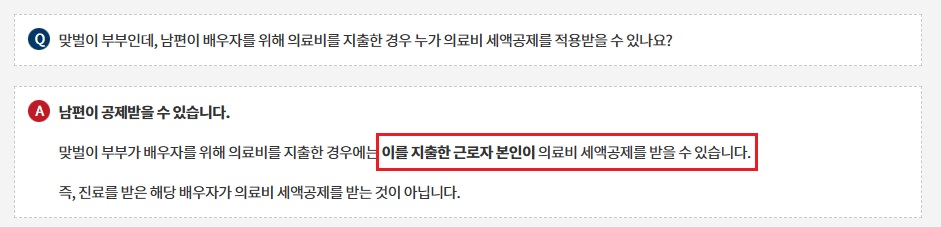 - 맞벌이 부부라면 소득 수준을 고려하여 의료비 공제를 받을 배우자 공제하기